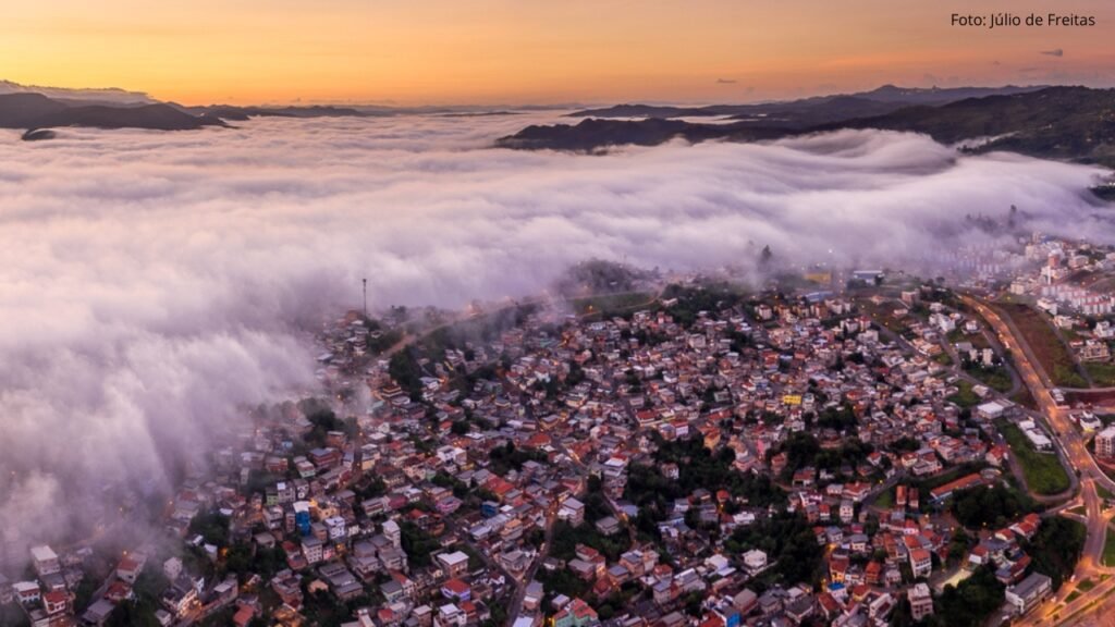 Porém, devido ao relevo acentuado das belas cadeias de serras que, pelas manhãs acomodam um verdadeiro mar de nuvens, a cidade chega a apresentar uma diferença de temperatura de 6ºC em relação à Capital do Estado Belo Horizonte que fica a aproximadamente 22 km de distância (do centro de uma ao centro da outra).